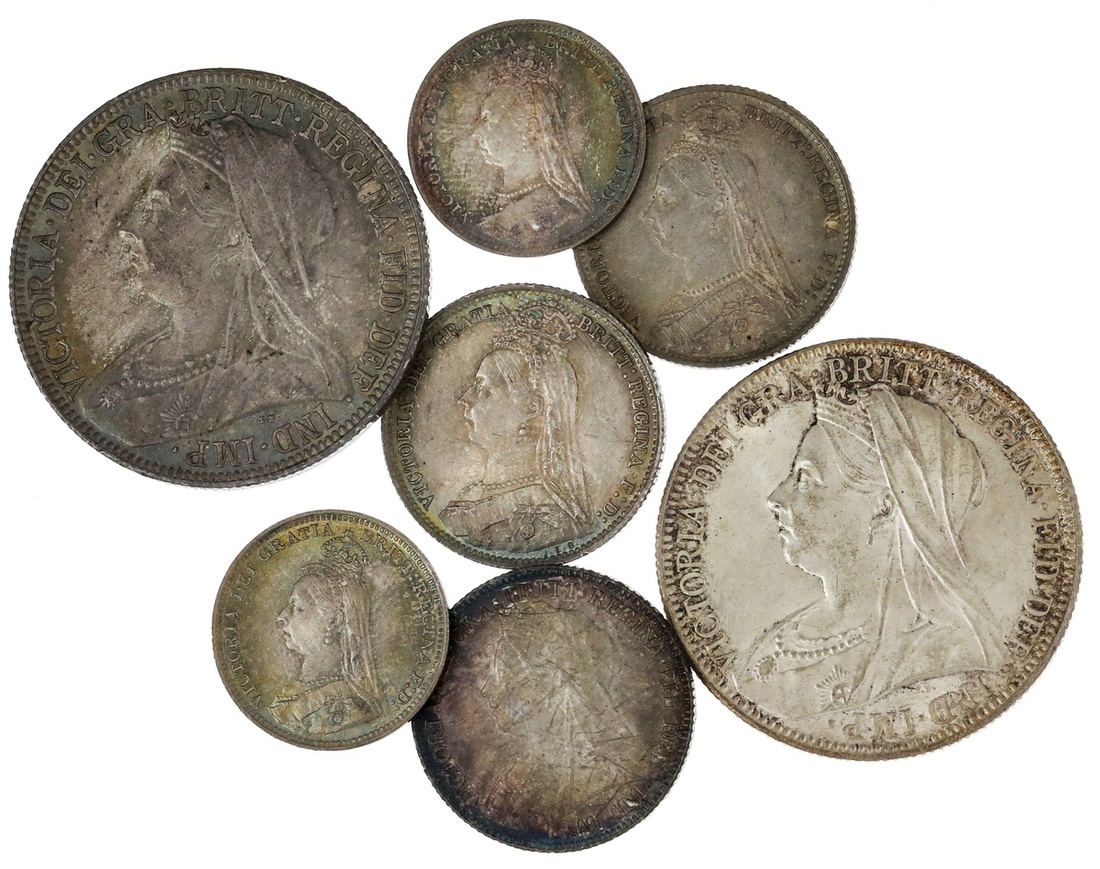 Great Britain. Victoria (1837-1901). Lot of high-grade Silver minors. Florins - 1898, 1900; Sixpence, 1890 (2), 1897; and Threepence, 1890 (2). BU-Very Choice Brilliant Uncirculated. (7)
