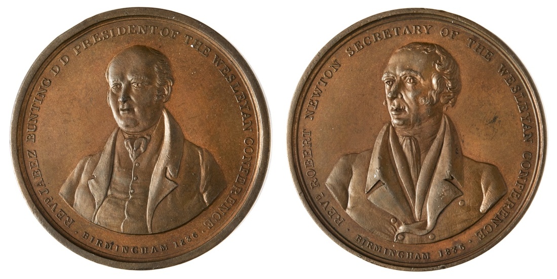 Great Britain. Victoria. Wesleyan Methodist Conference, Birmingham 1836. Medal. Bronze, 46mm. Bust of Rev. Jabez Bunting, Conference President, ¾ left, rev. Bust of Rev. Robert Newton, Conference Secretary, ¾ left. Chestnut brown. Extremely Fine.