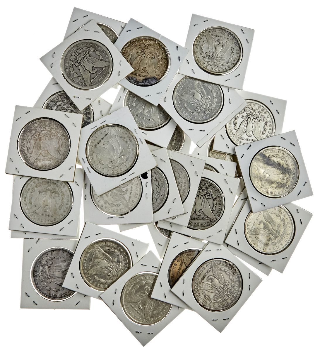 Run of circulated Morgan Dollars, 1878-1900. Includes: 1878, 1879, 1879-S, 1880-O, 1881, 1881-O, 1882, 1882-O, 1882-S, 1883, 1883-O, 1883-S, 1884-S, 1885, 1885-O, 1886 (2), 1886-O, 1887-O, 1888, 1888-O, 1889-O, 1890, 1890-O, 1890-S, 1891, 1891-O, 1891-S, 1892-O, 1900. A few VG, the rest Fine-Extremely Fine. (30)