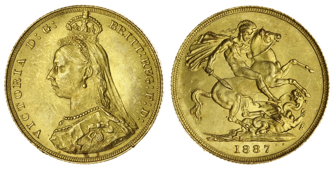 Victoria (1837-1901), 'Golden Jubilee' Sovereign, 1887, Jubilee bust left, normal J.E.B. on truncation, rev. St George and Dragon, edge milled, 7.99g, 12h (DISH L7; Marsh 125; MCE 547; Spink 3866), some tiny rim nicks, otherwise handsomely choice with sumptuous mint bloom, practically as struck, even for this common issue, seldom encountered this choice