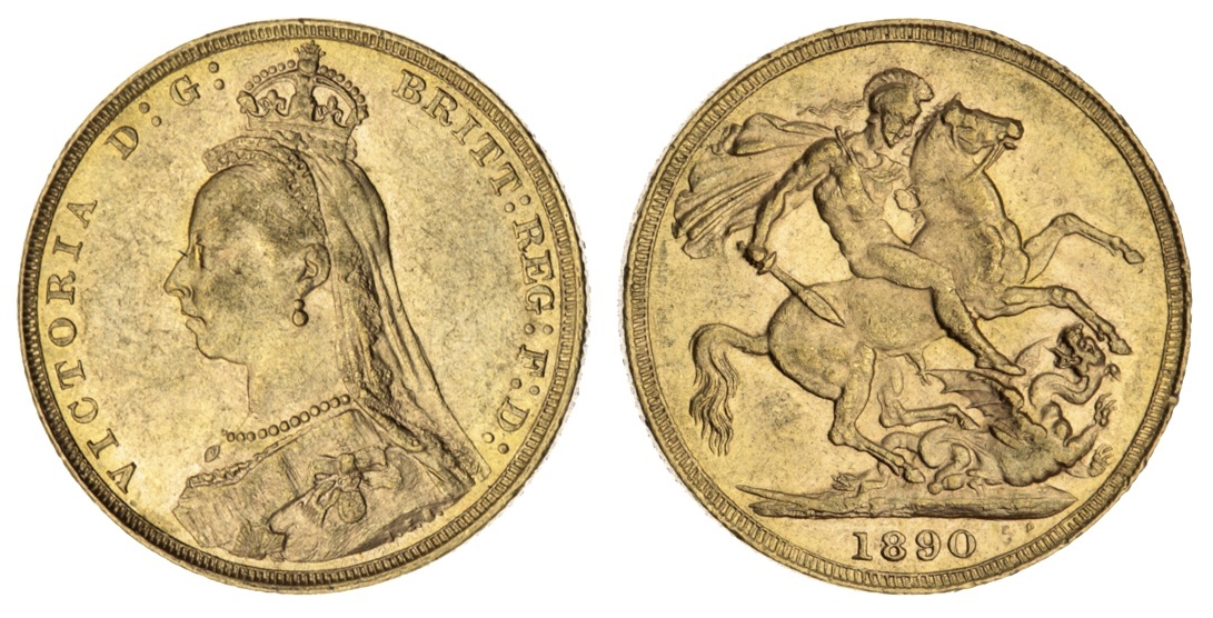 Victoria (1837-1901), 'Jubilee' Sovereign, 1890, 'Jubilee' head left, rev. St. George and Dragon, edge milled, 7.98g, 12h (Dish L13; Marsh 128; Spink 3868B), soft struck on hair, otherwise lustrous, good very fine