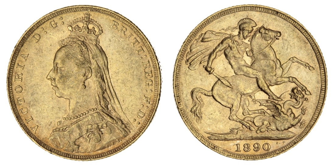 Victoria (1837-1901), 'Jubilee' Sovereign, 1890, 'Jubilee' head left, rev. St. George and Dragon, edge milled, 7.98g, 12h (Dish L13; Marsh 128; Spink 3868B), soft struck on hair, otherwise lustrous, good very fine