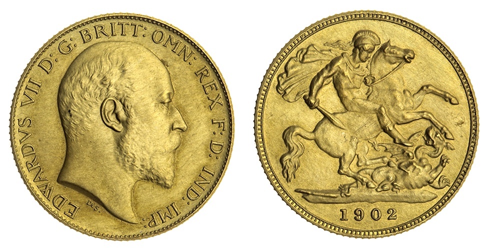 Edward VII (1901-1910), Matte Proof Half-Sovereign, 1902, bare head right, rev. St George and dragon, milled edge, 4.02g, 11h (Marsh 505; Spink 3974A), dark spot to hair, otherwise an attractive sandblasted matte proof, much as struck
