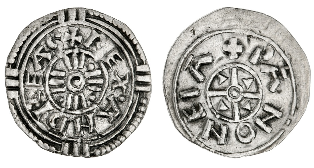 Hungary. Andreas (Endre) I (1046-1060). AR Denar. 0.71 gm. Three-lined cross, annulet with pellet at center, pellet in three angles; +REX ANDREAS, outer border over three-lined cross rev. Cross with annulet and pellet center, wedges in angles; +PANONEIA. Huszár 9. Good VF.