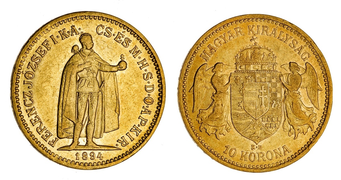 Hungary. Franz Josef (1848-1916). 10 Korona, 1894 KB. Körmöczbánya (Kremnitz). The emperor in regalia standing right, holding scepter and orb. KM 485. Very Fine.