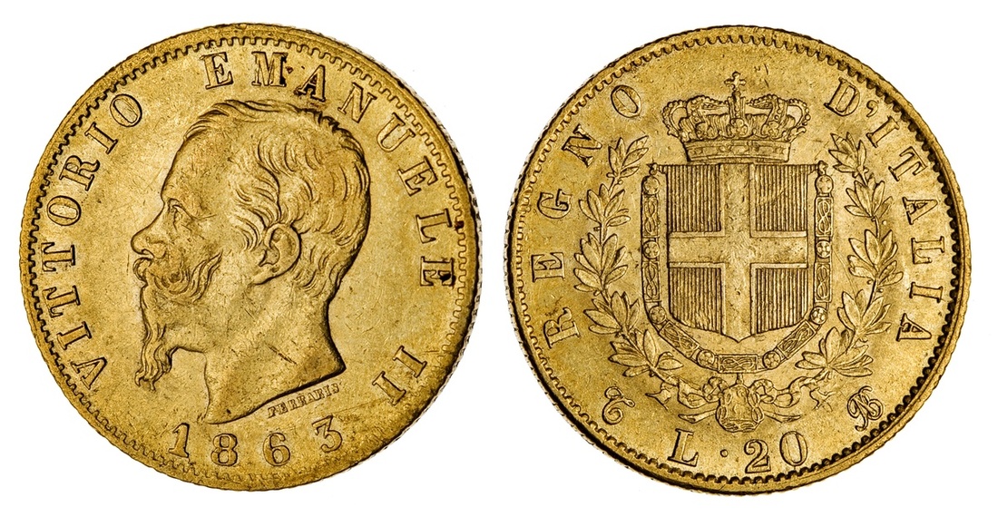 Italy. Kingdom. Vittorio Emanuele II (1861-1878). 20 Lire, 1863 T. Torino. Bare head left. KM 10.1. Extremely Fine.