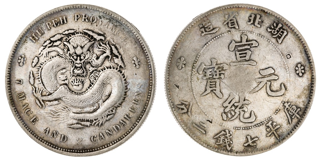 China. Imperial. Hsuan-T'ung (1908-1911). Hupeh Province. Dollar (1909-1911). Dragon. Y.131. Two tiny chops on legend side. Light gray. Good Very Fine.