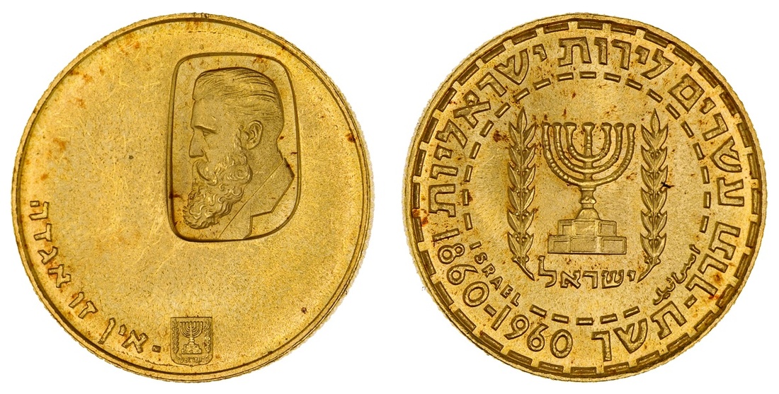 Israel. 20 Lirot, 5720 - 1960. Centennial of the Birth of Dr. Theodore Herzl. Inset portrait left. KM 30. Brilliant Uncirculated.