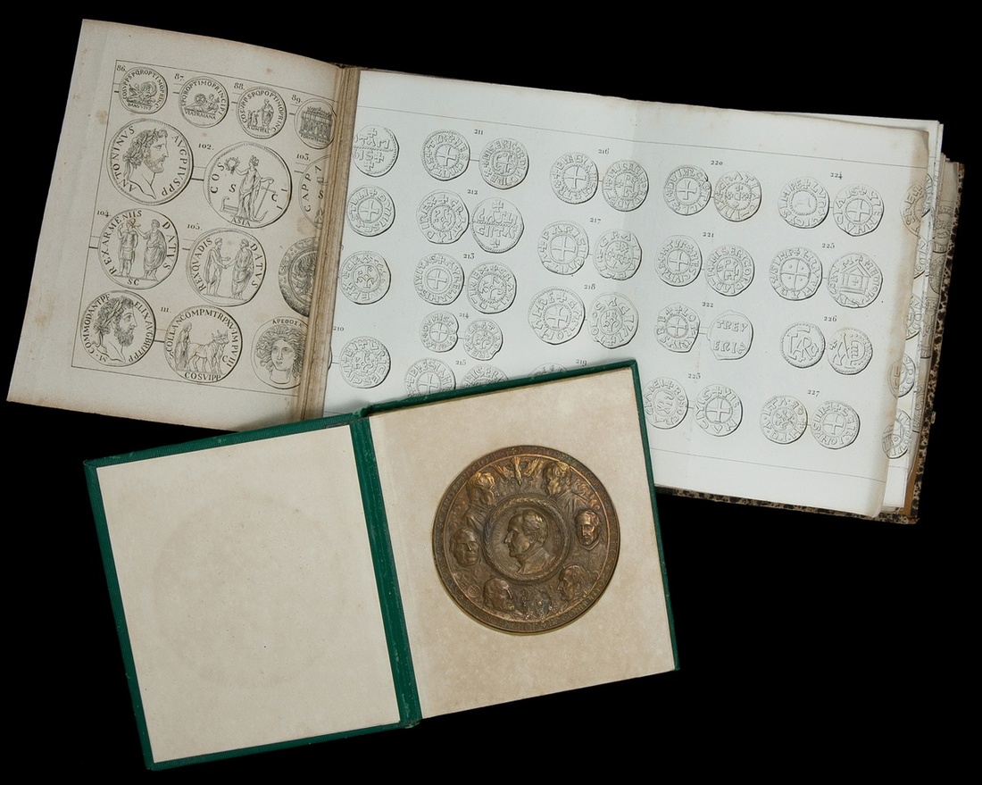 Nouveau Manuel Complet de Numismatique Ancienne. By J.B.A.A. Barthelemy. Paris (1851). Marbled cover separating. Good; also Bronze Medal for the Centennial of the Founding of the Diocese of New York, 1908. In its original book like case with gold imprint title. Extremely Fine.