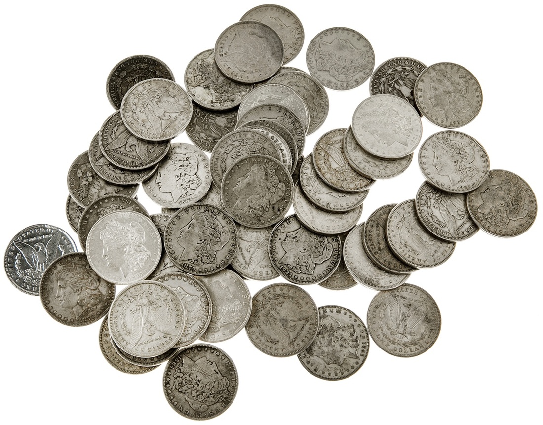 Large lot of circulated Morgan Dollars. 1921 (33) P, D, and S, various 1880s-1900 (21). One heavily polished. VG-EF. (54)