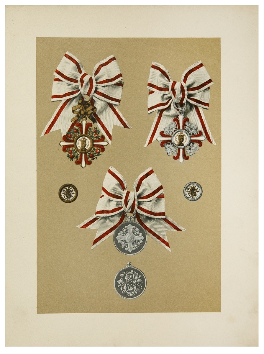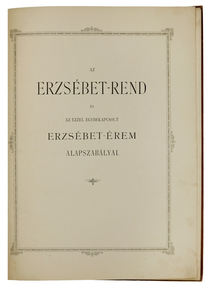 Hungary. Erzsébet-Rend es Az Ezzel Egybekapcsolt Erzsébet-Erem Alapszabályal. 1898. Rules and Regulations governing the Order of Elizabeth. Folio, with two color plates. Some staining to cover, otherwise Very Good.