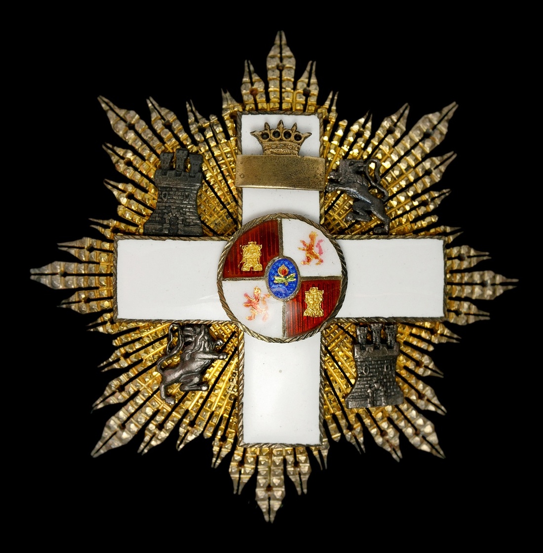 Spain. Order of Military Merit. 3rd Class. Breast Star with White Distinction. Franco Period. Silver, gilt and enamels. 67mm. Extremely Fine.