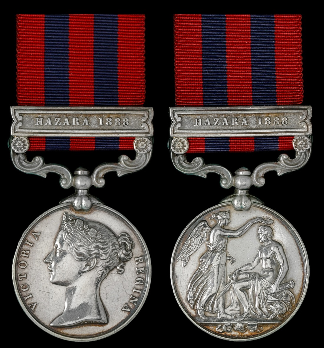 Great Britain. India General Service Medal, 1854-1895. One clasp: "Hazara 1888" (2111 Pte. J. Willock 2d Bn Sea. Highrs.). Engraved. On ribbon. Once polished. Extremely Fine.