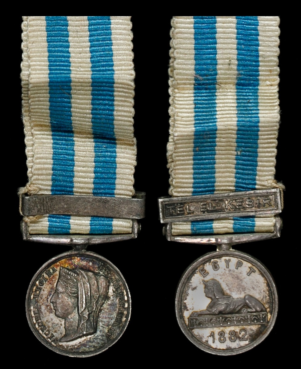 Great Britain. Egypt Medal, 1882-1889. Miniature. Dated 1882. One clasp: "Tel-el-Kebir". On ribbon. Toned. Extremely Fine.