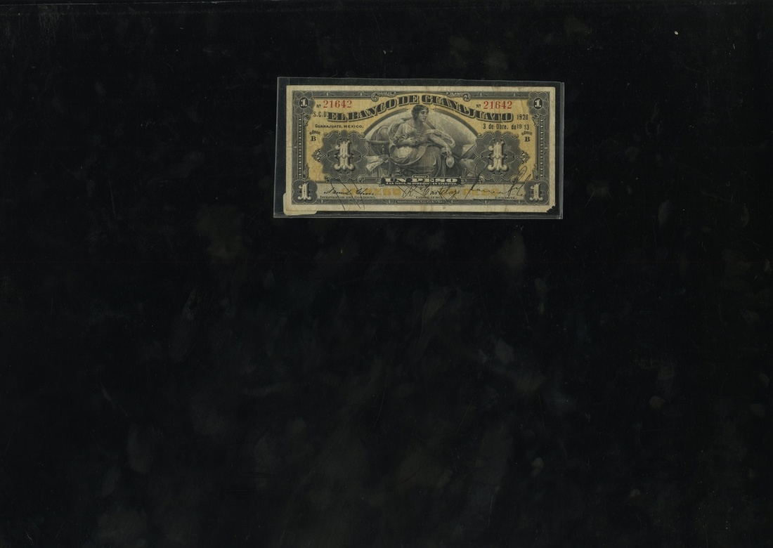 Mexico. Guanajuato. Banco de Guanajuato. 1 Peso. 1913. P-S287a. Woman holding mirror seated at center. American Bank Note Co. Bottom right cornertip missing, F-VF details.