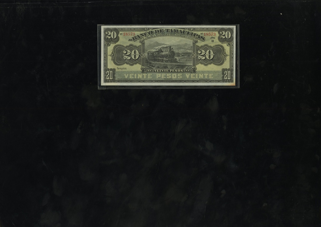 Mexico. Tamaulipas. Banco de Tamaulipas. 20 Pesos. 1914. P-S431d. Series H. Unsigned. Train at center. American Bank Note Co. No stamps on back. Uncirculated.