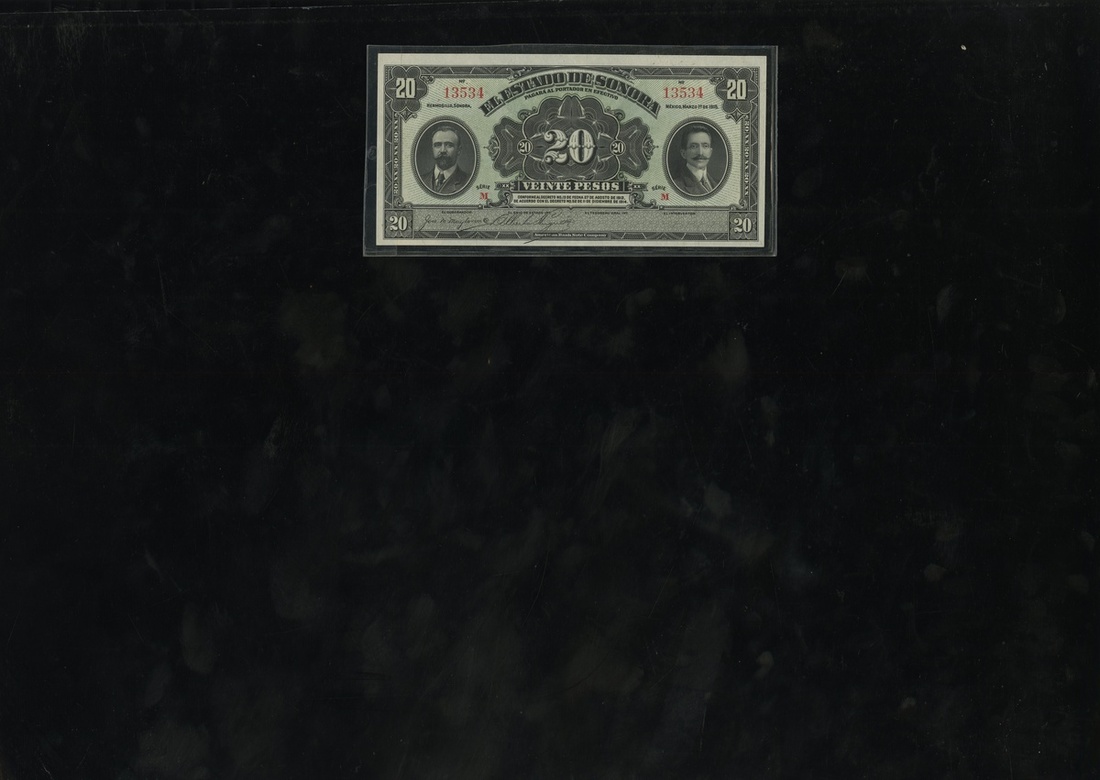 Mexico. Revolutionary. El Estado de Sonora, Hermosillo. 20 Pesos. 1915. P-S1074r. Remainder with two printed signatures. Portraits of Maduro at left and Suarez at right. American Bank Note Co. Uncirculated.