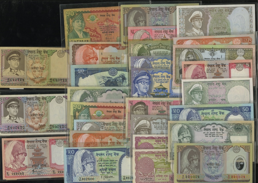 Nepal. Central Bank. Lot, 1965-2005 issues. P-12 (2), 16-18, 22, 23, 24 (2), 29-32, 33(2), 34, 37, 38, 41, 45-49, 52 (2), 53, 54. Generally VF-Unc. [28]