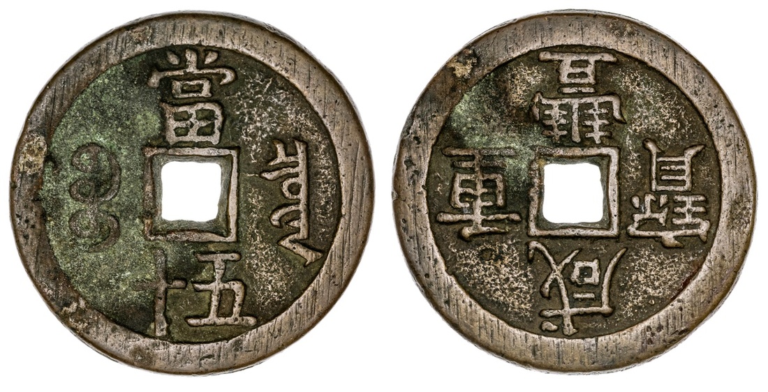 China. Qing Dynasty. Hsien-feng (1851-1861). Board of Revenue, Peking. 50 Cash. 56mm, 69.9 gms. C.1-7. Copper color. Some filing on rim, some earthen hues reverse. Very Fine.