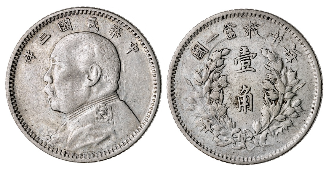 China. Republic. 10 Cents, year 3 (1914). Uniformed bust of Yuan Shih-kai left. L&M 77, Y. 326. Very Fine.
