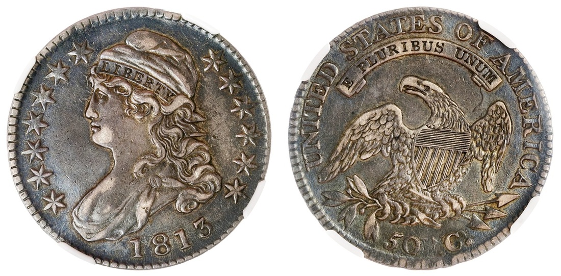 1813 50C/UNI Capped Bust Half Dollar. Overton-101. NGC XF 45. Deep gray with pearlescent highlights.