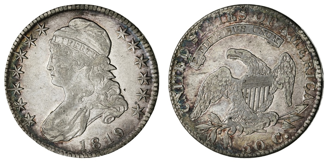 1819 Capped Bust Half Dollar. Very Fine. Toned.