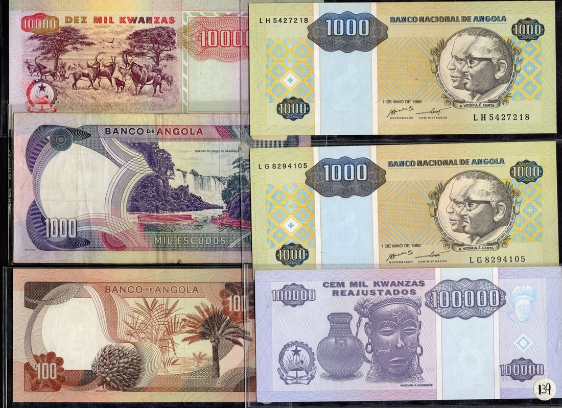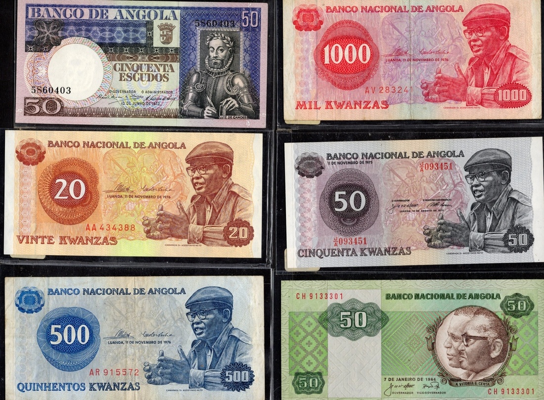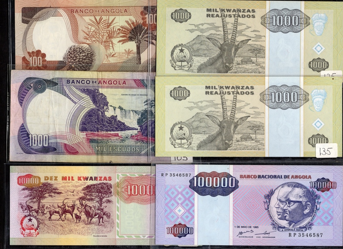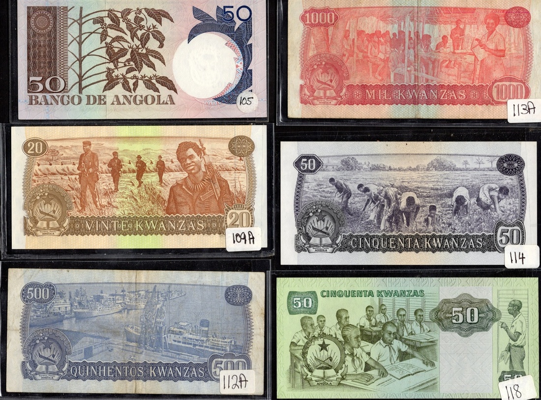 Angola. Banco de Angola-Banco Nacional de Angola. Lot of banknotes, 1956-1999. P-87, 88, 92, 93, 98, 99, 100, 101, 103, 105, 106 (2), 107, 108, 109, 112, 113, 114, 118, 131b, 135 (2), 139, 144. Generally About VF-Unc. [24]