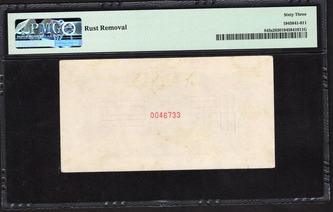 China. Peoples Republic. Peoples Bank of China. Back Specimen 500 Yuan. 1949. P-843s2. No. 0046733. Dark brown. PMG Choice Uncirculated 63, rust removal.