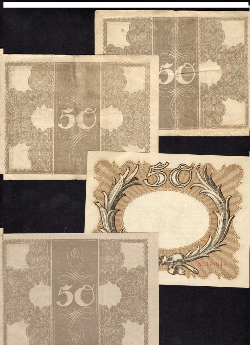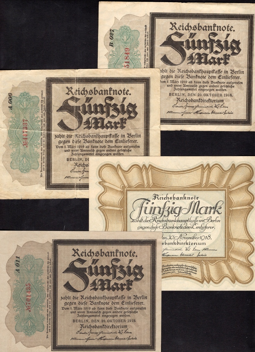 Germany. Imperial. Reichsbanknote. 50 Mark. 1918 Issues: P-64a. Fine and About VF; 64c. EF-AU; and P-65. Unc. [4]