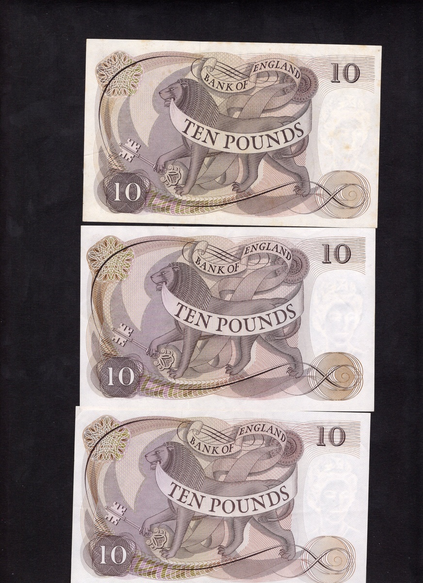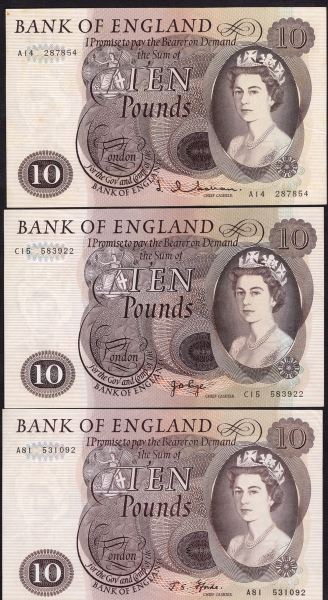 Great Britain. Bank of England. Quartet of 10 Pounds. ND (1964-75). P-376a, b, c (2). Dark brown on multicolor. Queen Elizabeth II at right; Lion left with key on back. EF-AU. [4]