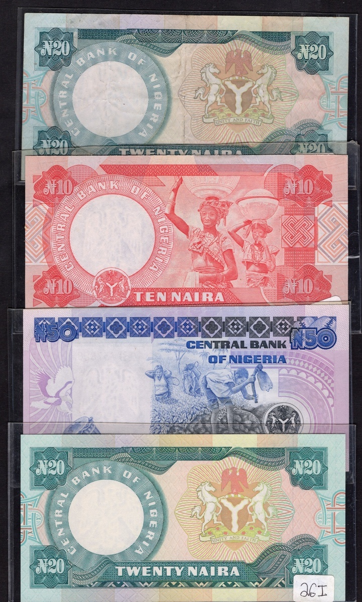 African Banknote Lot. Includes: Belgian Congo (5), Biafra (4) including P-2; Botswana (3); Eritrea (3); Ethiopia (12) including P-18a (2), 19a, 26a (2) and P-27; Nigeria (15) including P-2a; Guinea (2), Gambia (P-10a, Unc), Gabon (P-9, Unc), Katanga (2: P6a Fine P-7a, VG), Cabo Verde, Congo, Rhodesia (P-38, Unc), Sudan and Uganda. VG-Uncirculated.