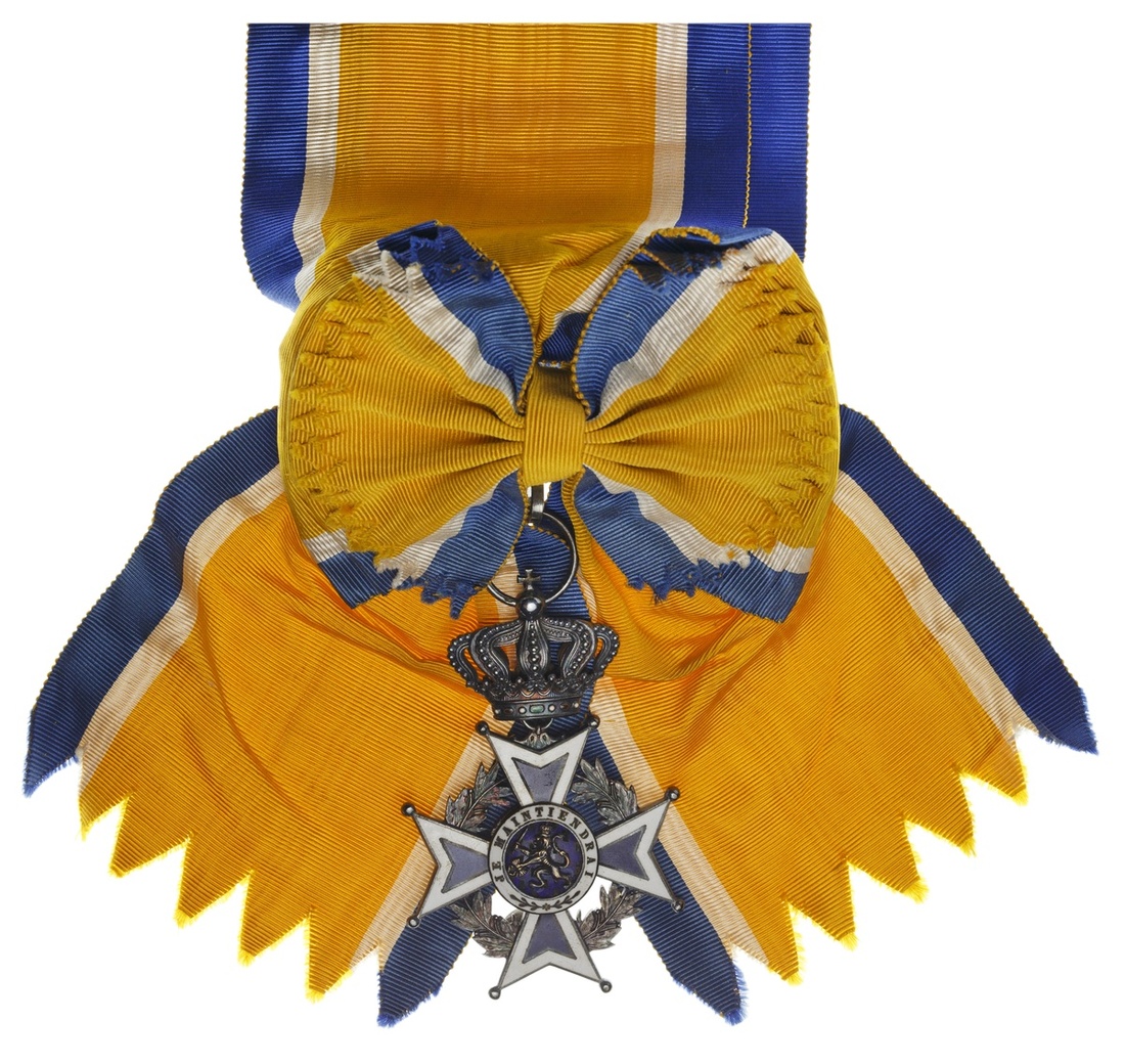 Netherlands. Order of Orange-Nassau. Commander's Sash Badge. 55 x 89mm (including crown suspender). Silver, blue, white and green enamels. On sash badge. Extremely Fine.