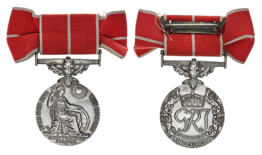Great Britain. British Empire Medal. Military Division. Awarded to Master-at-Arms Phyllis Sanderson, Women's Royal Canadian Naval Service. G.V.R. (M-A-A. PHYLLIS SANDERSON, W.R.C.N.S., W.61). Officially impressed. On ribbon bow. Toned. Choice Extremely Fine.