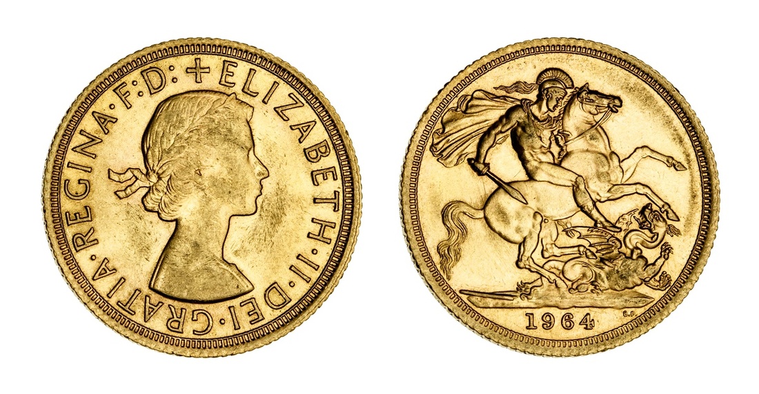 Great Britain. Elizabeth II (1952-2022). Sovereign, 1964. Young laureate head right, rev. St. George. S.4125, KM 908. About Uncirculated.