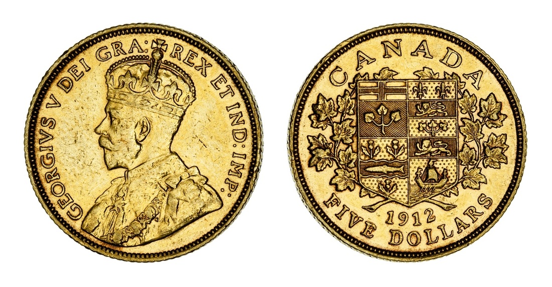 Canada. George V (1910-1936). 5 Dollars, 1912. Crowned bust left. KM 26. Cleaned. EF-AU Details.