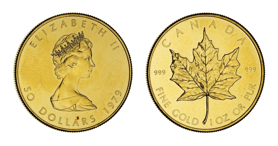Canada. Elizabeth II (1952-2022). 50 Dollars - 1 Ounce, 1979. Young bust right, value below, rev. Large maple leaf flanked by "999". KM 125.1. A few hairlines. Brilliant Uncirculated.