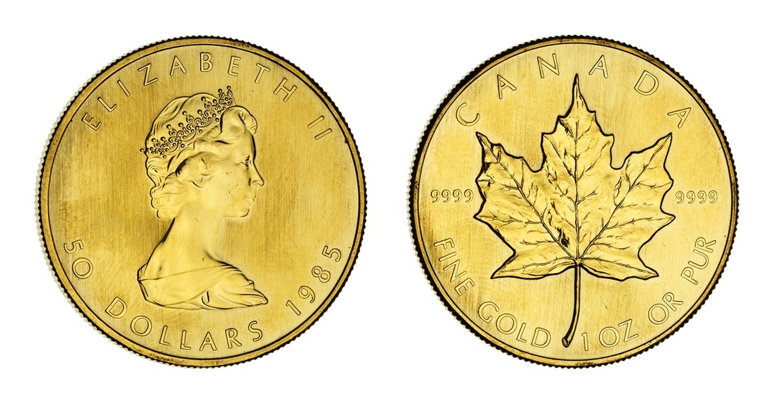 Canada. Elizabeth II (1952-2022). 50 Dollars - 1 Ounce, 1985. Young bust right, value below, rev. Large maple leaf flanked by "9999". KM 125.2. Some hairlines. Brilliant Uncirculated.