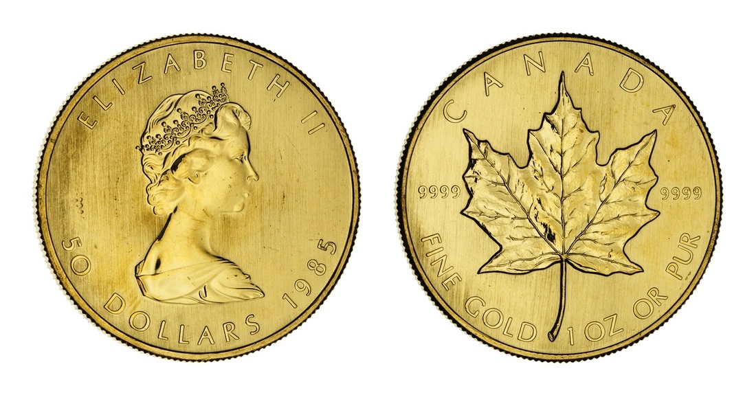 Canada. Elizabeth II (1952-2022). 50 Dollars - 1 Ounce, 1985. Young bust right, value below, rev. Large maple leaf flanked by "9999". KM 125.2. few hairlines. Brilliant Uncirculated.