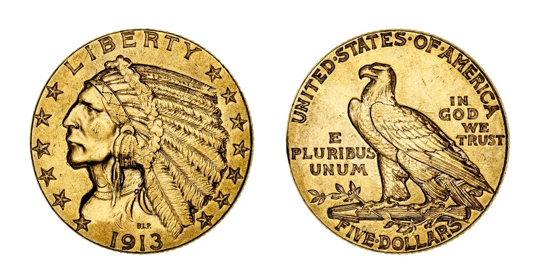 1913 $5 Indian. Uncirculated. Some contact marks.