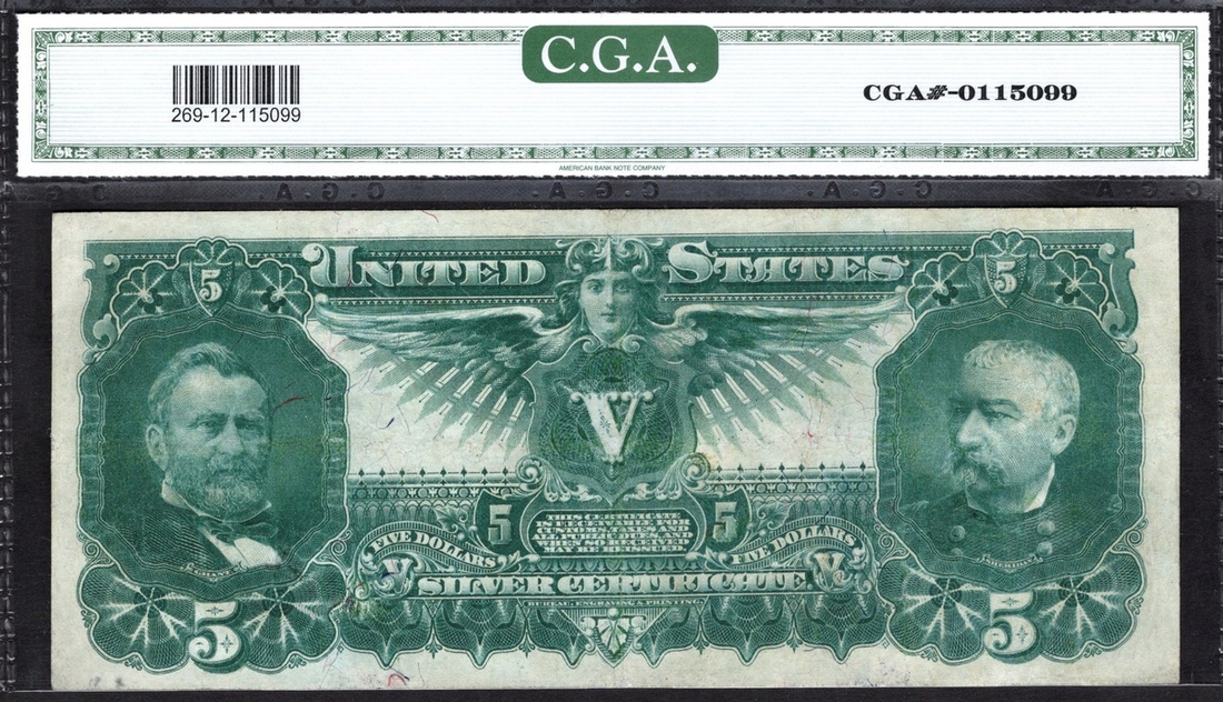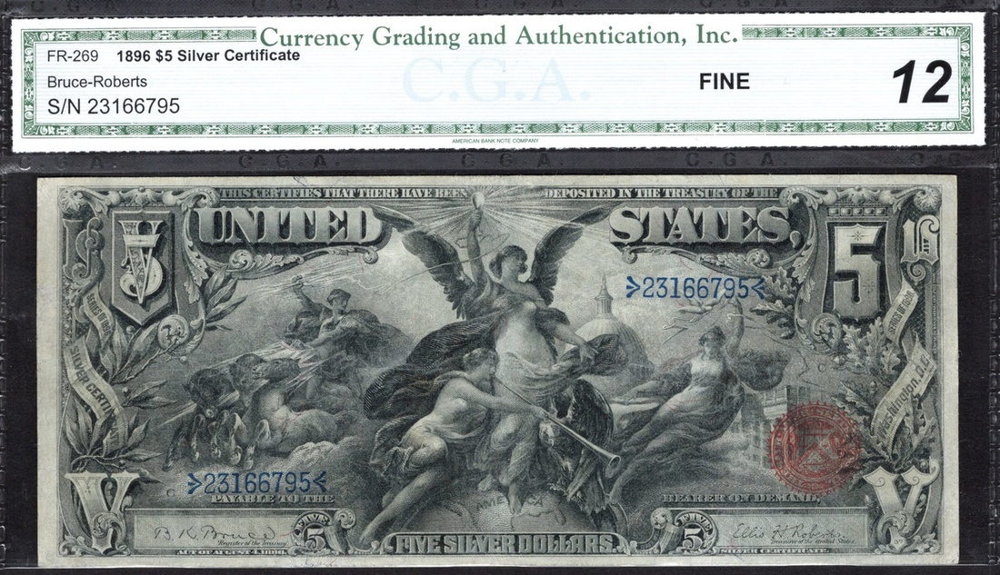 Fr. 269. $5 Silver Certificate. 1896. Educational series: "Electricity presenting light to the world"; Grant and Sheridan. Bruce-Roberts. No. 23166795. CGA Fine 12.