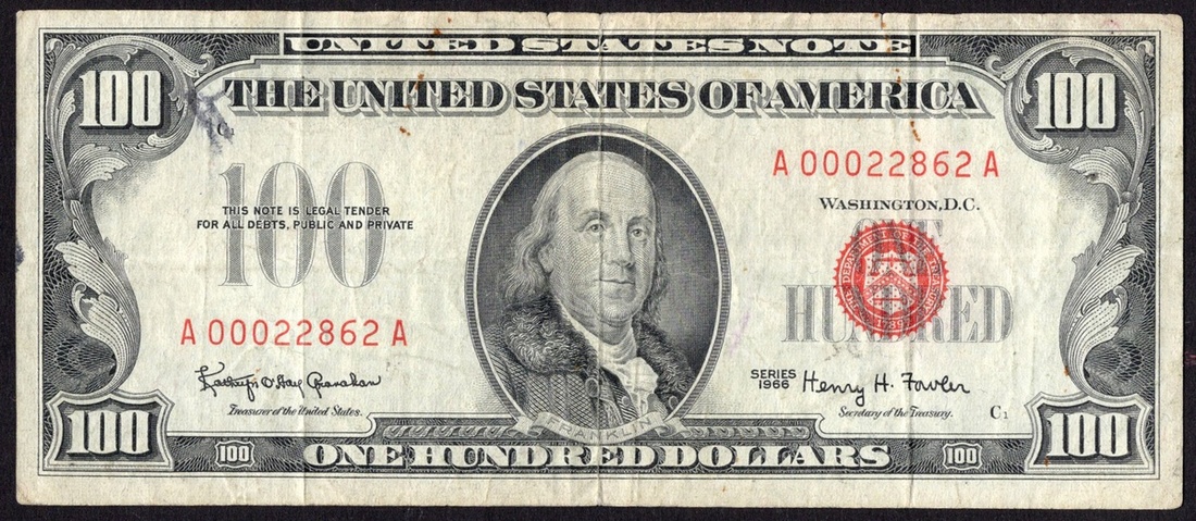 Fr. 1550. $100 Legal Tender. 1966. Franklin. Granahan-Fowler. No. A00022862A. Fine.