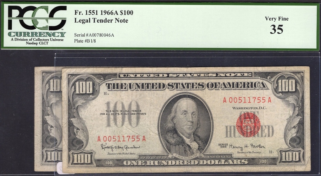 Fr. 1551. $100 Legal Tender. 1966A. Franklin. Elston-Kennedy. No. A00780046A. PCGS Very Fine 35.