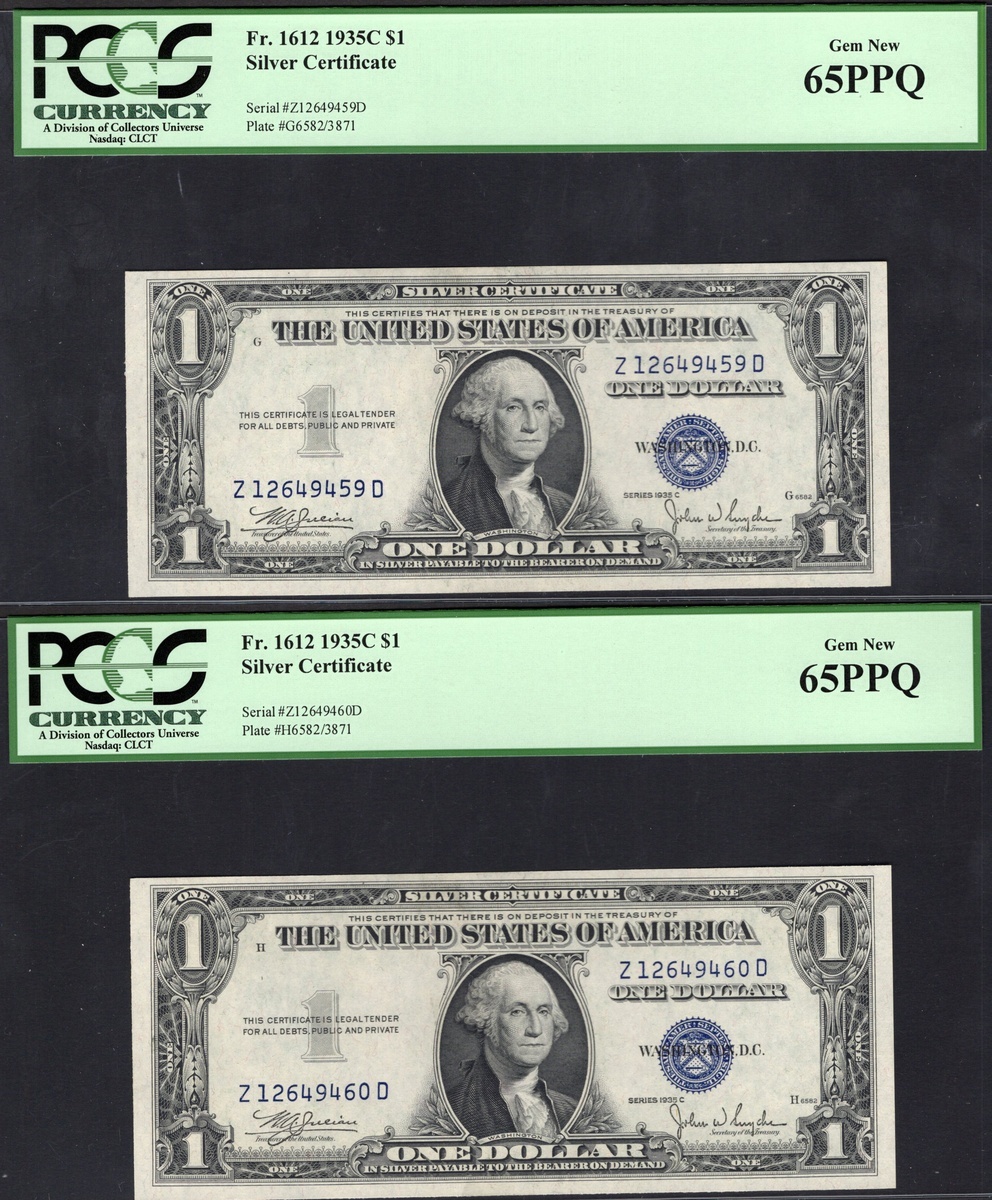 Fr.1612. $1 Silver Certificates. 1935 C. High-grade consecutive group. No. Z12649449D to Z12649460D. PCGS Choice New 63, Very Choice New 64 (6) and Gem New 65 (5). [12]