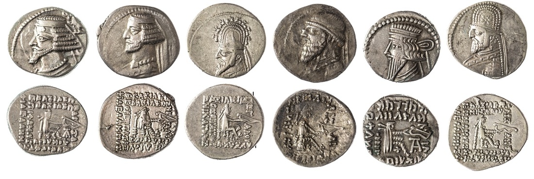 Parthian Empire. Lot of AR Drachm. Issues of Mithradates II, III, IV, V, Sinatrukes and Phraates IV. VF-Good VF. (6)
