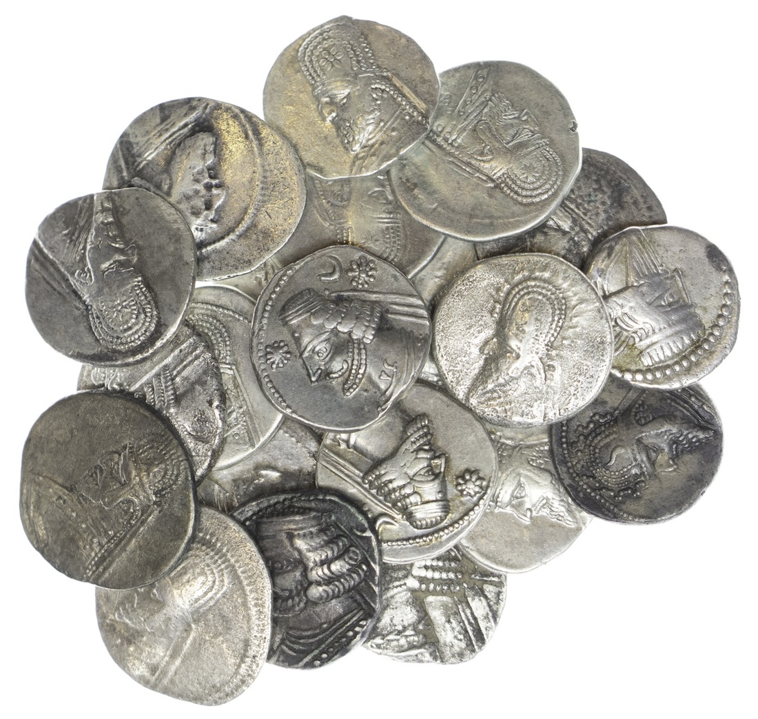 Parthian Empire. Large Lot of AR Drachm. Issues of Gotarzes II, Orodes II, Vologases I, III, VI, Artabanos II, and Osroes II. Some with some deposits, a few deep gray tone. About VF-EF. (20)