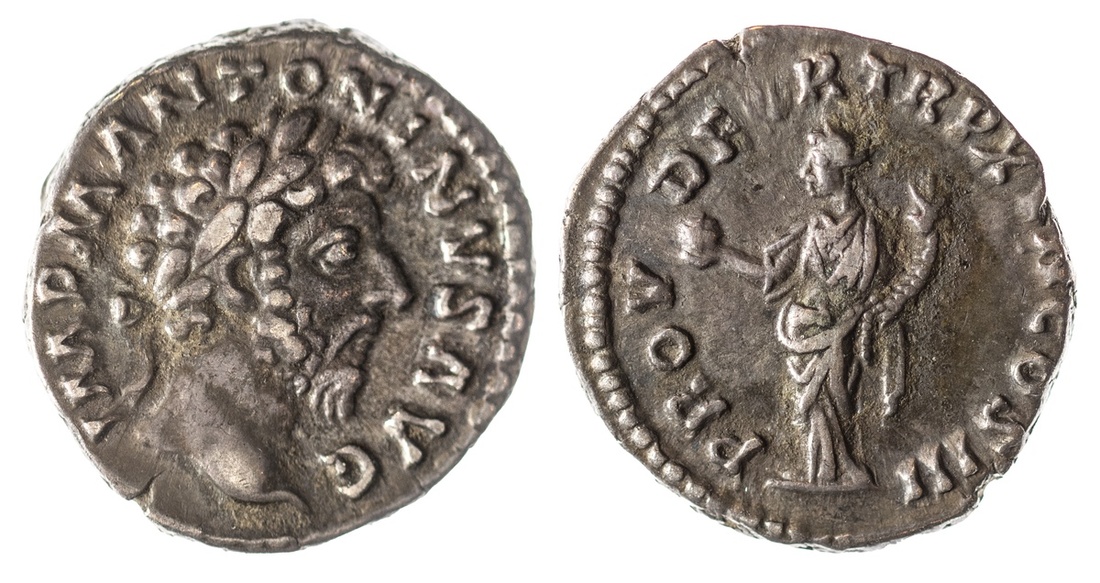 Roman Imperial. Marcus Aurelius (AD 161-180). Pair of AR Denarii. Bare head right, revs. Providentia standing left, holding globe and cornucopia; Fortuna seated left. RIC 67, 220. Toned Good Very Fine, and Very Fine. From the Baxter Collection. (2)