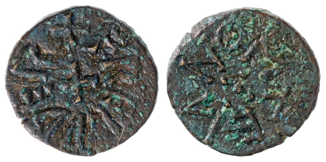 England. Kings of Northumbria. Redwulf (843/4). AE Styca. Moneyer: Monne. 1.20 gm. +REDVLF RE retrograde around cross, rev. +MONNE retrograde around cross of five pellets. S.867. Olive-brown with earthen hues. Very Fine.