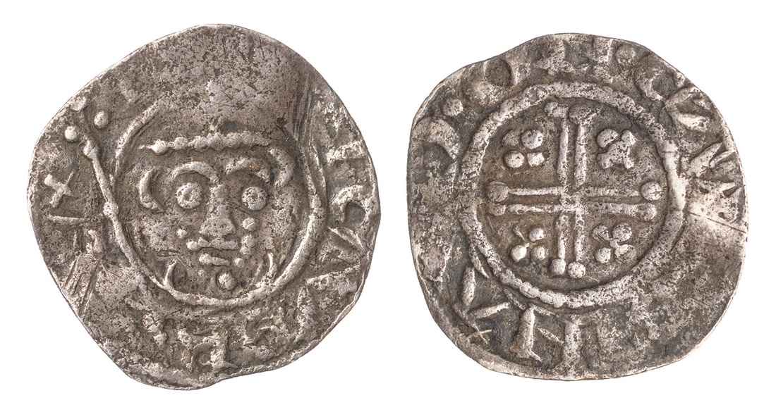 England. Plantagenets. Richard I (1189-1199). Penny. Canterbury, moneyer: Reinaud. 1.41 gm. Crowend facing bust with scepter, rev. Short voided cross, pellet quatrefoil in each angle, +(REI)NAVD ON CAN. S.1348C. Porosity. Fine.