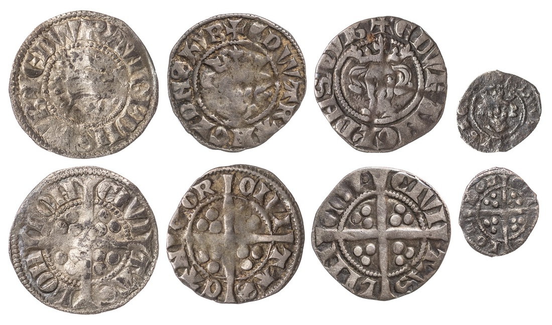 England. Plantagenets. Edward I, "Longshanks" (1272-1307). Trio of Pennies: London, Canterbury, and Lincoln, also Farthing. S.1450. Fine-VF. (4)