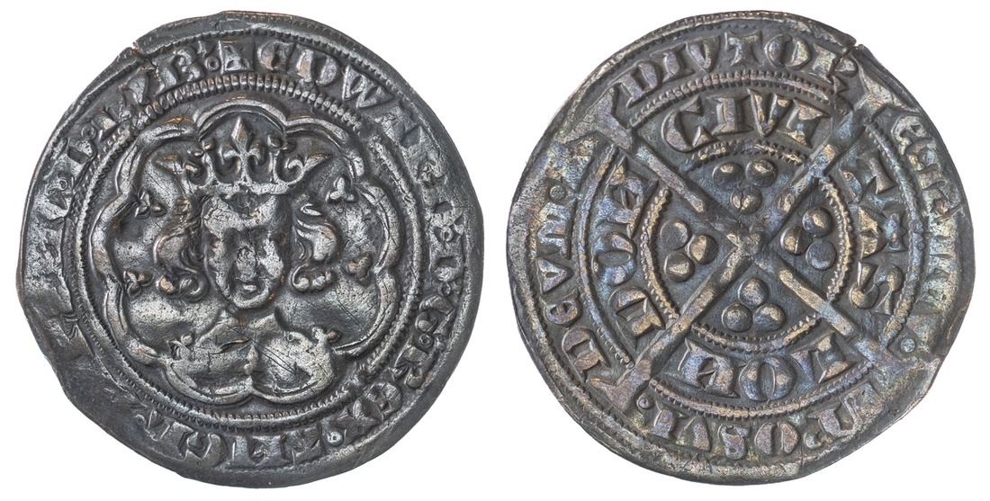 England. Plantagenets. Edward III (1327-1377). Fourth Coinage, Pre-treaty period, 1351-61. Pair of Groats, mm cross in square (1351-2). 4.48 and 4.37 gm. London. Crowned facing bust in tressure. S.1565. Deep gray, some old pinscratches obverse. Fine-About VF; and struck from early stage eroding die, About Fine. (2)